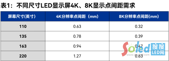 100英寸以上的大尺寸戶內顯示中點間距直接決定畫面清晰度,163英寸屏幕實現(xiàn)4K(3840×2160)分辨率需P0.94mm間距, 8K(7680×4320)分辨率則需P0.47mm。目前主流廠商通過倒裝芯片與微米級COB技術,已將點間距降到0.9mm以下,其中雷曼光電等企業(yè)實現(xiàn)P0.47mm量產,推動4K、8K超高清顯示在指揮監(jiān)控、商用會議、家庭影院等全場景落地。