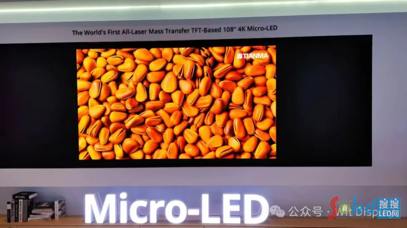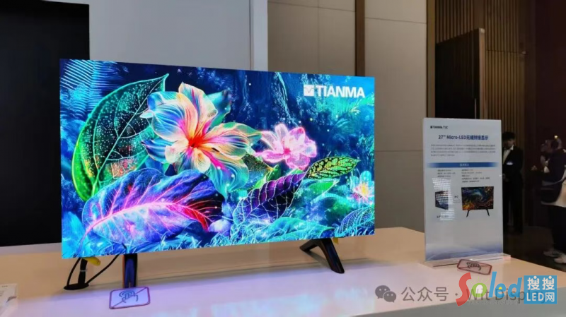 IT之家從大會獲悉,天馬還發(fā)布了“無界巨幕屏”,采用 Micro LED 技術(shù),通過全激光巨量轉(zhuǎn)移與無縫拼接,實現(xiàn) 108 英寸 4K 巨幕顯示,峰值亮度 1500nit,反射率小于 2%,無縫拼接寬度可縮小至 20μm 以下,對比度達 1,000,000:1,可用于零邊框家庭影院、商業(yè)顯示等。