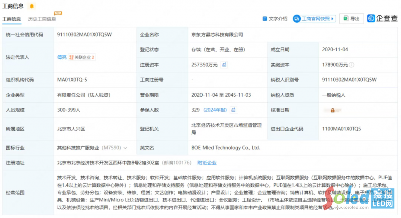 近日,企查查官網(wǎng)消息,京東方全資子公司京東方晶芯科技(以下簡(jiǎn)稱(chēng)“京東方晶芯”)完成工商變更,注冊(cè)資本由25.05億元人民幣增至約25.74億元人民幣,增資金額為6850萬(wàn)元。