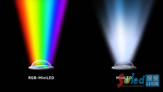 與傳統(tǒng) Mini LED 不同,RGB-Mini LED 并非使用單一的白光或藍(lán)光 LED 作為背光源。它直接在背光模組中集成了紅(R)、綠(G)、藍(lán)(B)三原色的 Mini LED 芯片。