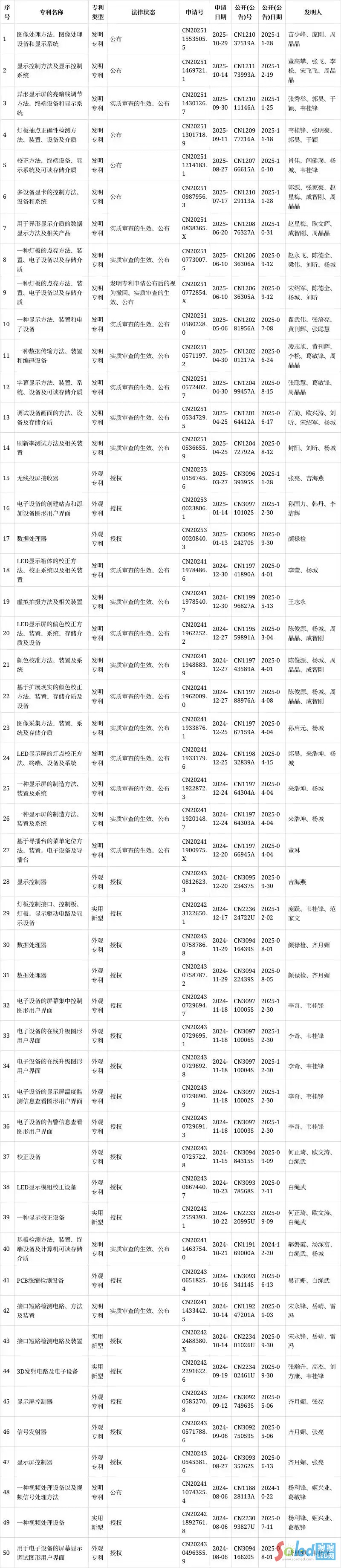 西安諾瓦星云科技股份有限公司近期專利情況如下: