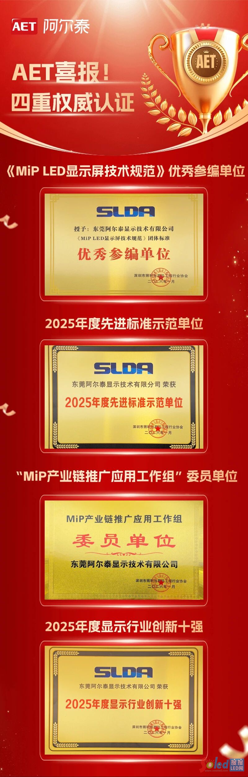 成為《MiP LED顯示屏技術(shù)規(guī)范》的優(yōu)秀參編單位,意味著AET阿爾泰在MiP領(lǐng)域的技術(shù)路線、工藝標準和測試方法,獲得了行業(yè)的深度采納與認可。這不僅是榮譽,更是一份責任,標志著我們從技術(shù)的踐行者,成長為行業(yè)標準與未來方向的貢獻者。