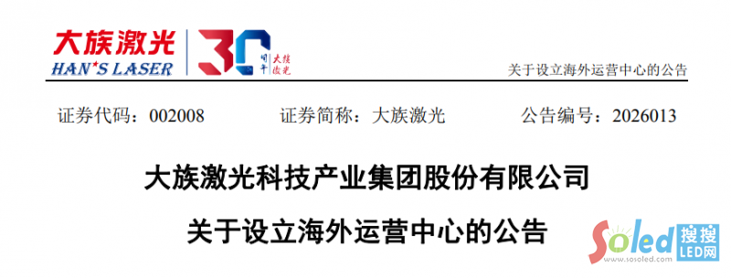 2月24日晚間,激光裝備企業(yè)大族激光發(fā)布公告,宣布公司將進一步深耕國際市場。根據公告內容,大族激光第八屆董事會第十四次會議已于2月13日審議通過了關于設立海外運營中心的議案。